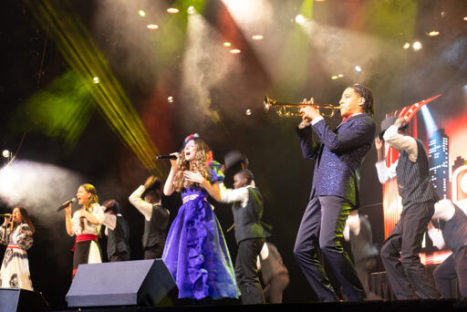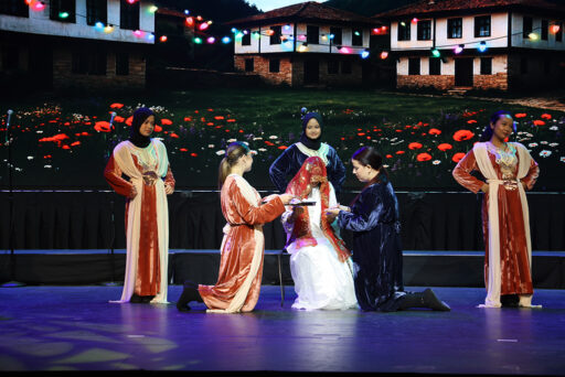Her biri Gülen Hareketi’nin eğitim gönüllüleri tarafından ekilen tohumların meyveleri olan 30 dansçı ve 50 şarkıcı öğrenci sahnede büyük bir performans sergiledi.