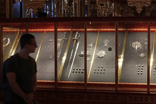 Ganimetlerin arasında; tören kılıcı, elmaslarla süslü apoletler, taçlar ve düğmeler bulunuyordu. Bunların hepsi toplamda 4 bin 300 değerli taşla kaplıydı.