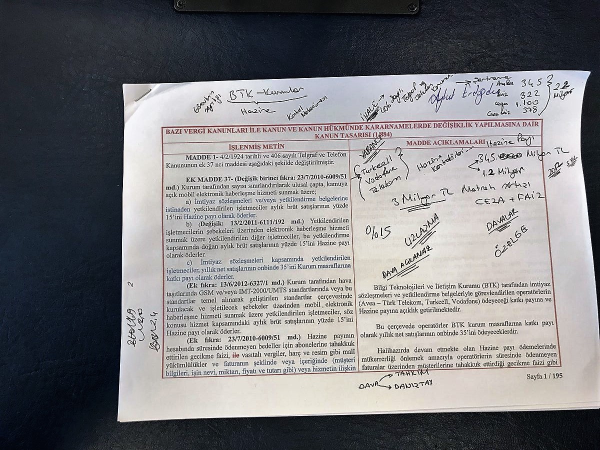 “Torba yasa ile ağırlıklı yabancı üç şirketin (Telekom, Turkcell, Vodafone) yaklaşık 5 milyar TL kamu borcu fiilen siliniyor… Biz tüketici (abone) olarak her ay şirketlere ödediğimiz faturalarla Hazine’ye ödenmek üzere yüzde 15 Hazine Payı ödüyoruz. Şirketler bizden topladıkları bu paraları Hazine’ye aktarmak zorunda. Eğer aktarmazlarsa üç katı ceza ödemek zorundalar… Şimdi yapılan düzenlemeyle Hazine’den kaçırılan Hazine alacağında üç kata ceza uygulaması bir kata indiriliyor… Yani af geliyor… Hazine 2012 yılına kadar yapılan incelemelerden yaklaşık 2,2 milyar TL alacaklı durumda. Daha beş yıllık dönem henüz incelenmemiş. 2017 yılına kadar bu kapsamda kanun konusu alacak tahmini olarak 5 milyar TL… Bu tutarla ilgili hükümet bir tür af getiriyor… Üstelik Maliye Bakanlığı’na şirketlerle uzlaşma yetkisi veriliyor… AKP, uzlaşma kurumunu yandaşların vergilerini silmek için kullandı… Getirilen uzlaşmalarla ilgili şikayet ve dava açma hakkı bile kaldırılıyor… Minareyi çalacaklar kılıf hazırlanıyor… Bu yasayla vergi yükü gariban vatandaşın sırtına yüklenirken bu üç yabancı ağırlıklı telekom şirketinin milyarlarca lira borcu siliniyor.”