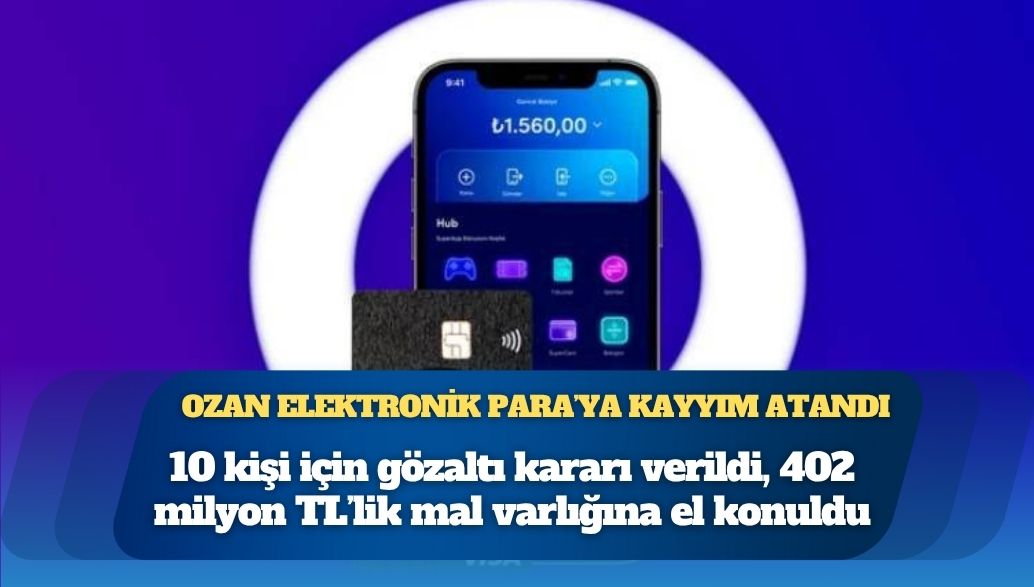 İstanbul’da suç örgütü kurarak yasa dışı yollarla elde edilen gelirleri akladıkları ve yüksek hacimli şüpheli finansal işlemler yaptıkları iddiasıyla 10 şüpheli hakkında gözaltı kararı verilirken, 402 milyon lira değerindeki mal varlığına el konuldu. Soruşturma kapsamında, suçtan elde edildiği değerlendirilen gelirlerin finansal sisteme dahil edilmesinde aktif rol oynadığı belirlenen Ozan Elektronik Para AŞ’ye TMSF tarafından kayyım atanmasına karar verildi.