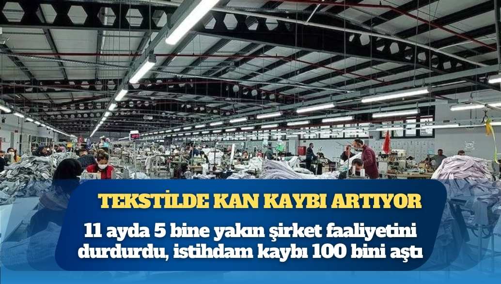 Sosyal Güvenlik Kurumu verilerine göre bu yılın 11 aylık döneminde tekstil ve hazır giyim sektöründe 5 bine yakın şirket faaliyetlerine son verirken 108 bin 125 çalışan da işsiz kaldı.