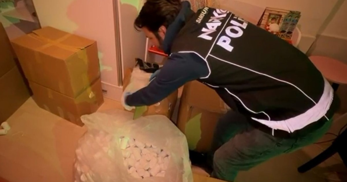 Samsun’un İlkadım ilçesinde evlerinde yapılan aramada 230 bin sentetik hap ele geçirilen Ü.S. isimli kadın ile oğlu Z.S. gözaltına alındı.