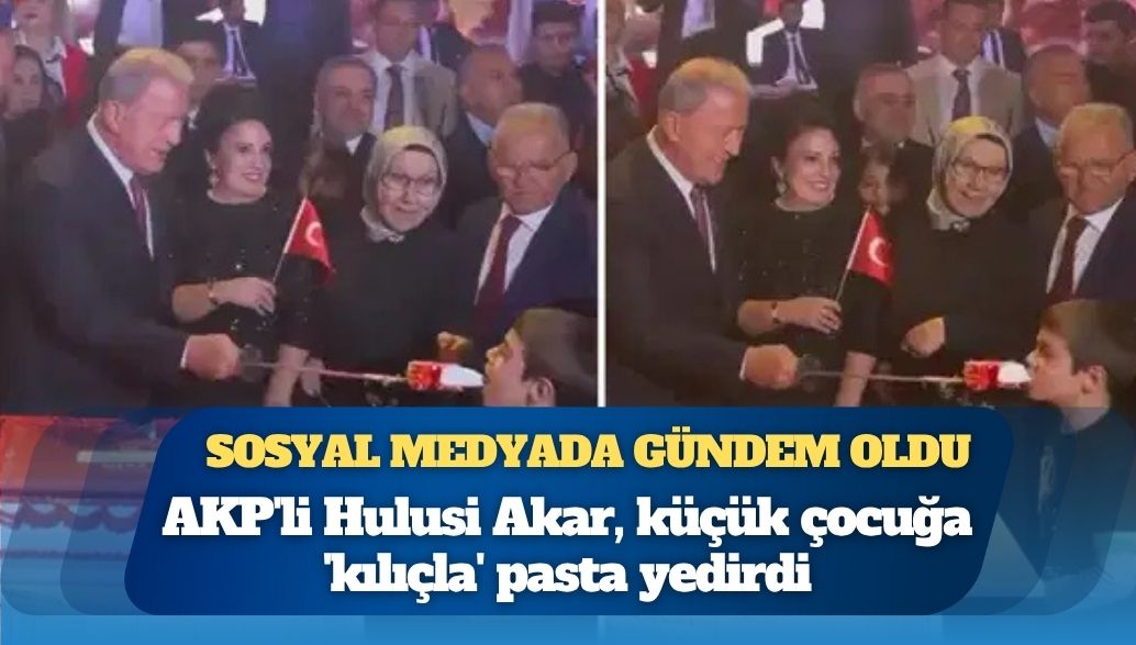AKP Kayseri Milletvekili Hulusi Akar, 29 Ekim Cumhuriyet Bayramı dolayısıyla Kayseri’de düzenlenen resepsiyon küçük bir çocuğa kılıçla pasta yedirtti. O anlar sosyal medyada gündem oldu.