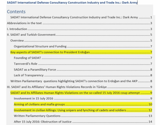 Raporda, SADAT’ın “Türkiye içinde ve dışında operasyonlar yürüten yeni bir Türk Gladio’su” olarak tanımlanması ve bu ifadenin BM tarafından sansürlenmeden yayımlanması, dikkat çeken gelişmeler arasında yer aldı.