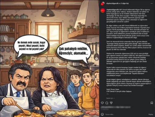 Bir diğer halktan uzak AKP Denizli Milletvekili de öğrencilerimize kolot peyniri, Erzurum tel peyniri ve minzi peyniri tanıtarak sahurda kuymak yaptığını ifade ediyor. Kendi sosyal medya hesabından paylaştığı videoda ‘Bunu aranızda yemeyen var mı?’ diye soruyor ve öğrencilerin neredeyse yarısı el kaldırıyor. Gençlerin, kendi ülkelerinin yöresel lezzetlerine bile ne kadar uzak ve hasret kaldığını bizzat kendi elleriyle gözler önüne seriyor ama tablonun trajikomikliğinin farkında bile değil. Derin bir ekonomik krizin ortasında, lüks bir gurme edasıyla kuymağın hangi peynirle daha güzel olacağı dersi vermek tam anlamıyla abesle iştigaldir. Neden mi? Çünkü vekilin menüsündeki kolot peynirinin kilosu 400 lira, minzi peyniri 330 lira, Erzurum tel peyniri ise 400 lira civarında. İktidarın bir üniversite öğrencisine 2026 yılı için reva gördüğü aylık öğrenim kredisi ise sadece 4 bin lira. Yani öğrencinin koca bir ayı geçirmeye çalıştığı para, vekilin sofrasında anlattığı peynirlerin birkaç kilosuna zar zor yetiyor. Şovun bittiği ve ülkedeki öğrencinin acı gerçeğinin başladığı yer tam olarak burasıdır. Bırakın halkın arasına karışmayı; artık sıradan bir öğrenci sofrasında bir dilim peynirin, bir lokma sucuğun bile lüks olduğundan zerre haberleri yok.”