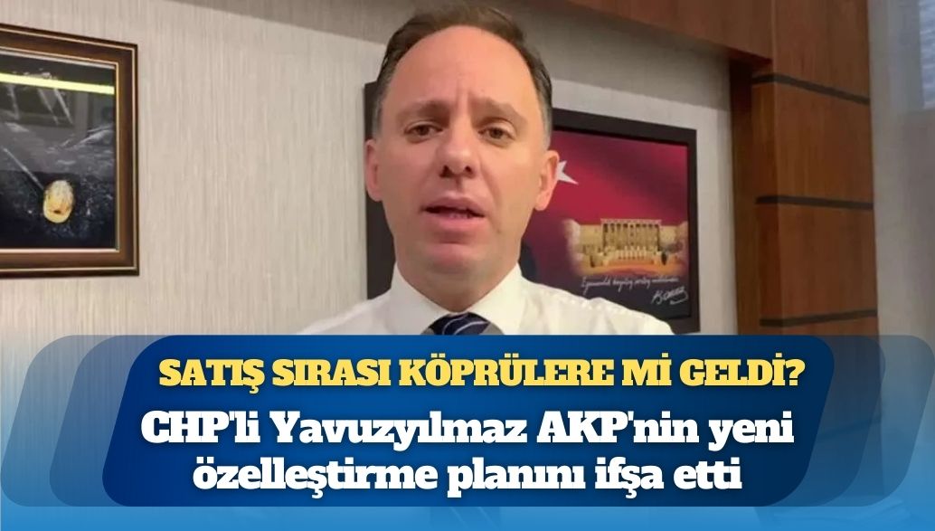 CHP Genel Başkan Yardımcısı ve Zonguldak Milletvekili Deniz Yavuzyılmaz, “AKP’nin yeni özelleştirme planı” diyerek, 15 Temmuz Şehitler Köprüsü ve Fatih Sultan Mehmet Köprüsü’nün 25 yıllığına özelleştirilmesi için yabancı bir şirkete fizibilite çalışması yaptırıldığını söyledi.