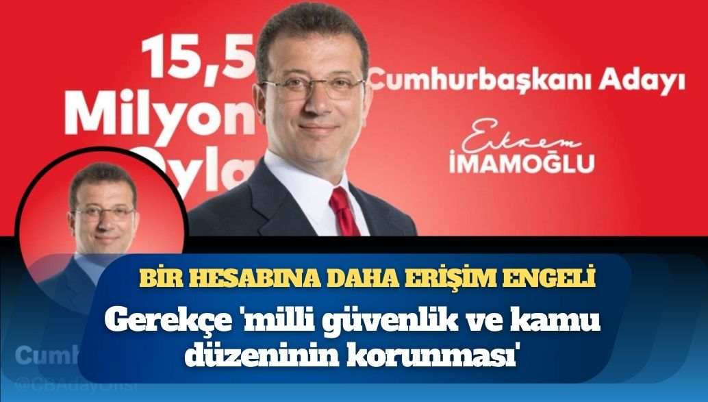 Engelli Web’in aktardığına göre; İBB Başkanı ve cumhurbaşkanı adayı Ekrem İmamoğlu’nun X hesabına erişim engeli geldi. 8 Mayıs’ta kişisel hesabı Türkiye’den görünmez kılınan İmamoğlu’nun hesabına getirilen erişim engeline ‘millî güvenlik ve kamu düzeninin korunması’ gerekçe gösterildi.