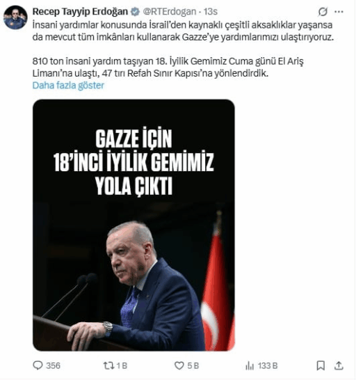 105 bin takipçili yeni hesabındaki ilk gönderisi 7 milyon kullanıcıya ulaşan İmamoğlu’na karşılık aynı saatlerde Cumhurbaşkanı Erdoğan tarafından atılan son paylaşım sadece 133 bin kişi tarafından görüntülendi.