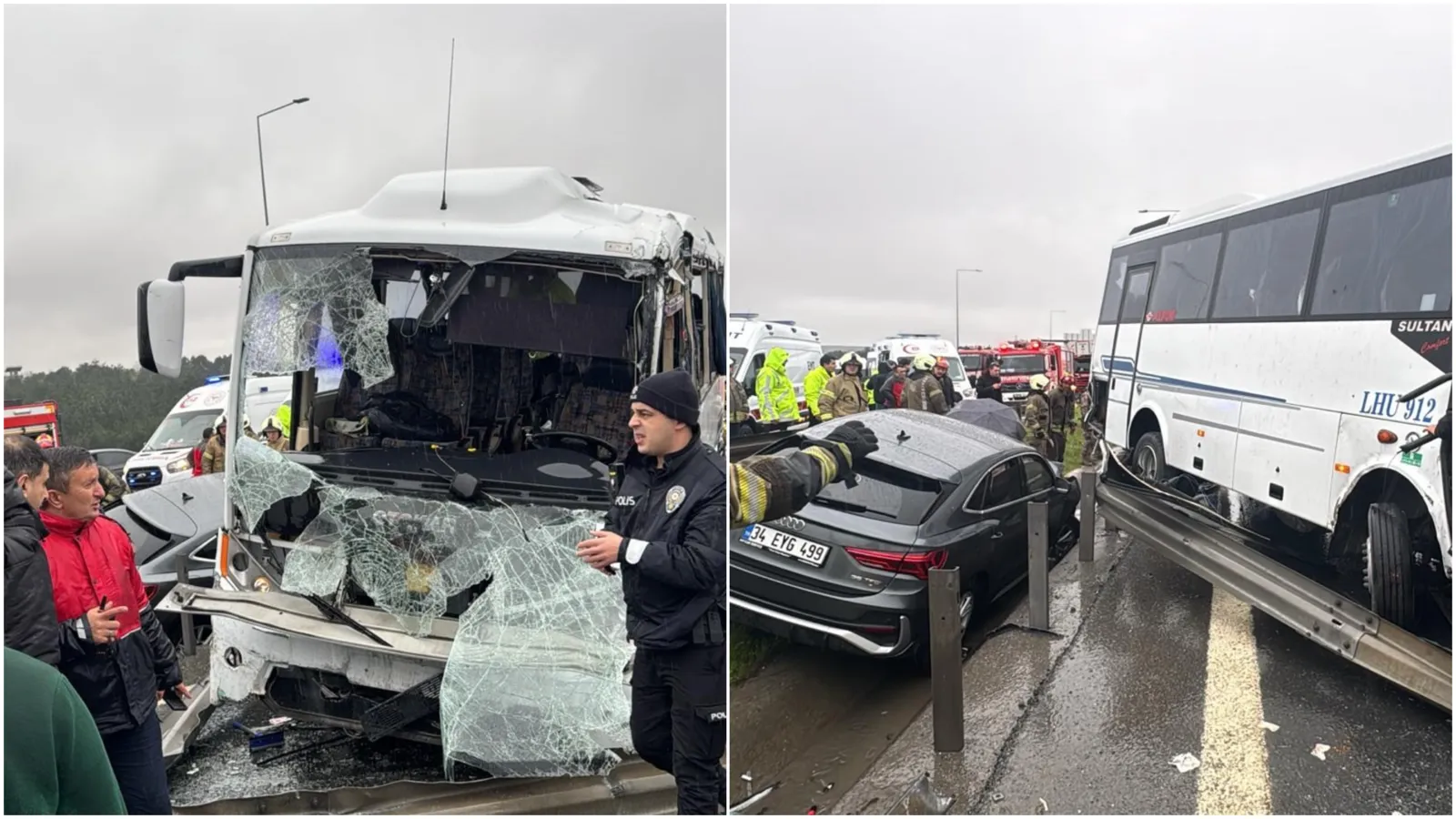 İstanbul’da Başakşehir, Kuzey Marmara Otoyolu Fenertepe polisleri taşıyan servis aracının da aralarında olduğu zincirleme kaza meydana geldi.