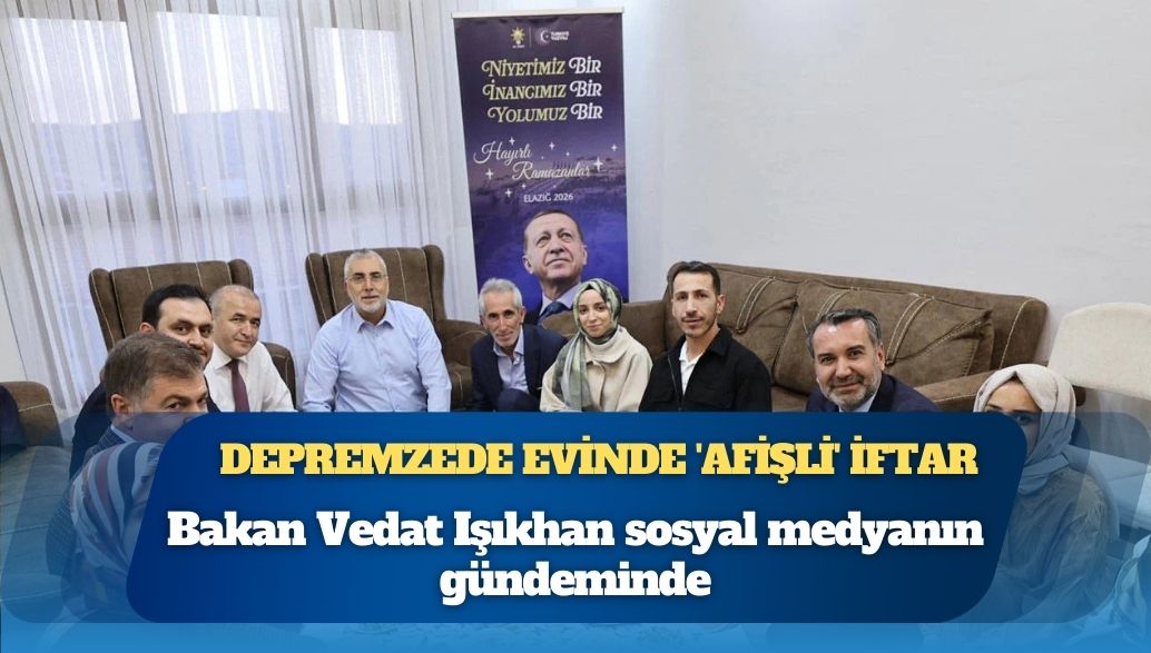 Çalışma ve Sosyal Güvenlik Bakanı Vedat Işıkhan, Elazığ’da depremzede ailenin evinde katıldığı iftar yemeğine Cumhurbaşkanı Recep Tayyip Erdoğan reklam afişiyle gitti.
