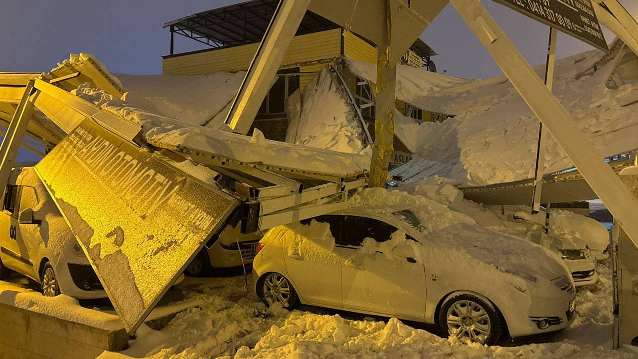 İki gün boyunca etkisini sürdüren yoğun kar yağışı ve tipi nedeniyle Şanlıurfa Sebze ve Meyve Hali’nde karın ağırlığını taşıyamayan bazı iş yerlerinin çatıları çöktü.