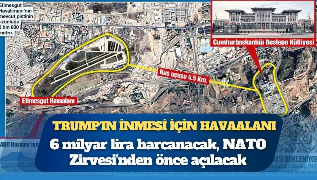 ABD Başkanı Trump ile 32 ülkenin devlet başkanları 7-8 Temmuz 2026’da Ankara’daki NATO Zirvesi’nde buluşacak. Atatürk tarafından 1935’te açılan ve bugüne kadar askeri amaçla kullanılan Etimesgut Havalimanı da bu toplantı için hazırlanıyor. Zirveye ‘Air Force One’ ile gelecek Trump ile diğer başkanların uçakları Etimesgut Havalimanına inecek. Ancak mevcut pistin uzunluğu 2 bin 800 metre. Trump’ın uçağı ise iniş için daha uzun piste ihtiyaç duyuyor.