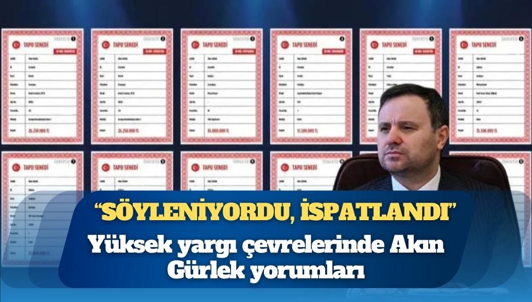 Özel, AKP’deki temel duygunun ‘biz bu yükü taşıyamayız’ olduğunu, Gürlek’in mal varlığı hakkında yargı camiasında ‘söyleniyordu, ispatlandı’ değerlendirmesinin yapıldığını söyledi. Özel, Akın Gürlek’in verdiği yanıtın ardından kendisine iki kişinin destek verdiğini, bunlardan birisinin MHP Genel Başkan Yardımcısı olduğunu söyledi.