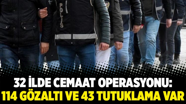 Cemaat soruşturmaları kapsamında İstanbul merkezli 32 ilde yapılan operasyonlarda 114 kişi gözaltına alındı. Gözaltına alınanlardan 43’ü tutuklanarak cezaevine gönderildi.