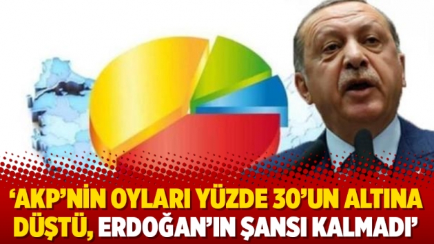 Avrasya Kamuoyu Araştırmaları Merkezi Başkanı Kemal Özkiraz, AKP’nin oylarının yüzde 30’un altına düştüğünü belirterek, “Erdoğan’ın şansı kalmadı, her şekilde kaybediyor” dedi.