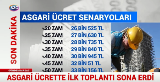 Asgari ücret yaklaşık 30 milyon çalışanı ilgilendiriyor. İlk toplantıda herhangi bir rakam açıklanmazken asgari ücret zammına dair masadaki seçeneklerin aşağıdaki gibi olduğu tahmin ediliyor: