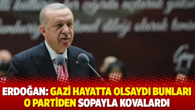 Atatürk’ün vefatının 83’üncü yıldönümü dolayısıyla düzenlenen anma etkinliğinde konuşan Cumhurbaşkanı Erdoğan, “Şayet inanın, Gazi hayatta olsaydı emin olun bunları o partiden sopayla kovalardı” dedi.