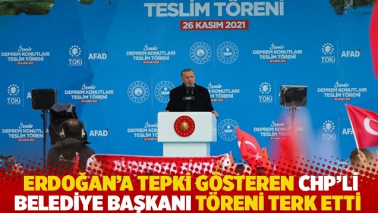 Töreni, protokolde takip eden; depremin en çok vurduğu Bayraklı’nın CHP’li belediye başkanı Serdar Sandal, Erdoğan’ın bu sözlerinin ardından alanı terk etti.