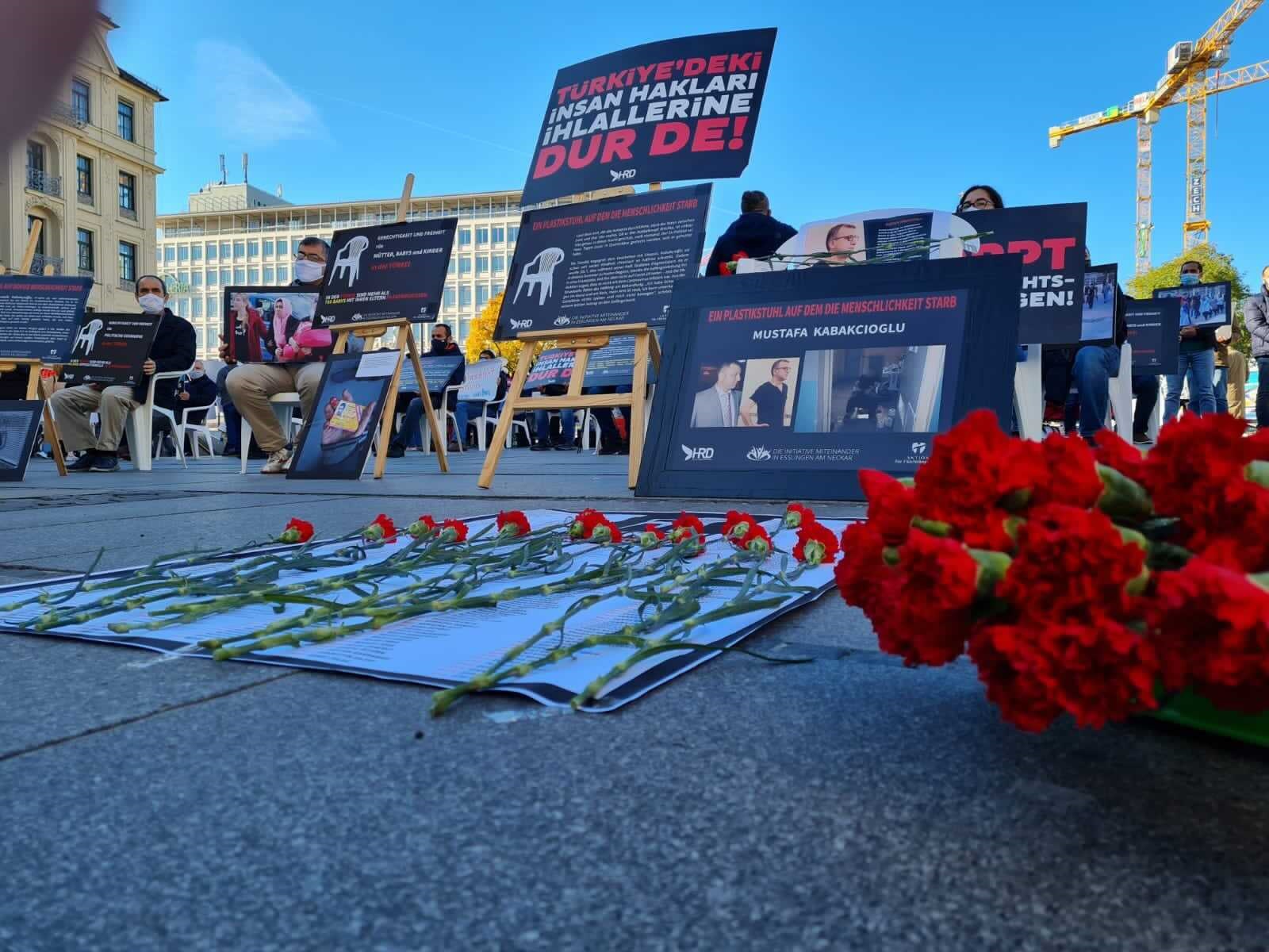 Almanya merkezli sivil toplum örgütleri Bayern eyaletinin başkenti Münih’te başta karantina hücresinde beyaz sandalye üzerinde hayatını kaybeden Türkiye’deki mağdurları temsilen ‘Beyaz Sandalye’ eylemi yaptı.