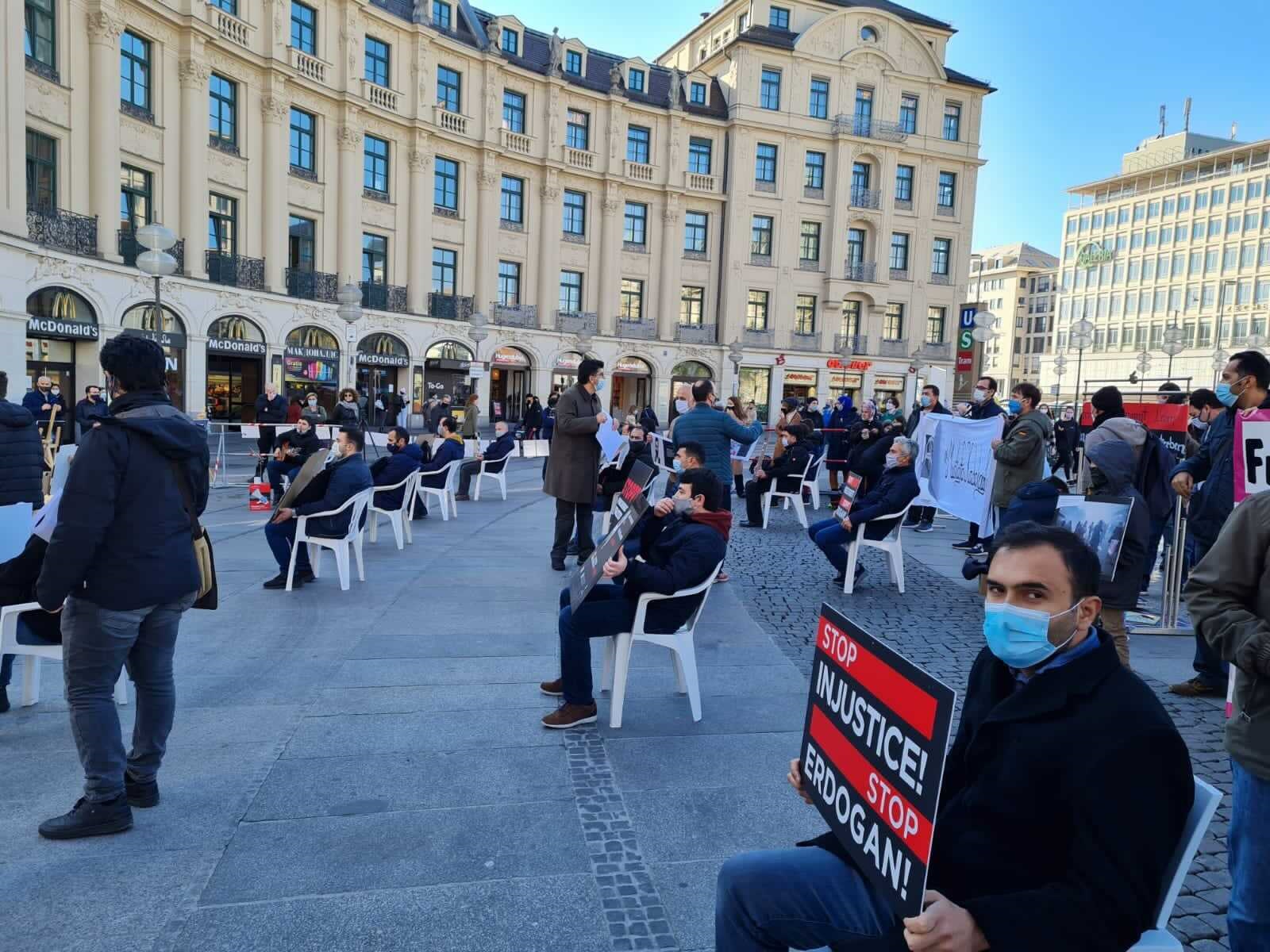 Bu nedenle bugün Münih’ten Erdoğan hükümetinin bu yasadışı eylemlerinin sona ermesi gerektiğini haykırıyoruz.
