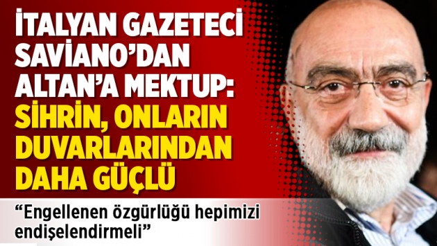 İtalyan gazeteci ve yazar Roberto Saviano, Silivri Cezaevi’nde tutuklu bulunan meslektaşı Ahmet Altan’a yazdığı “Sihrin, onların duvarlarından daha güçlü” başlıklı mektupta, “Engellenen özgürlüğü hepimizi endişelendirmeli” ifadelerini kullandı.