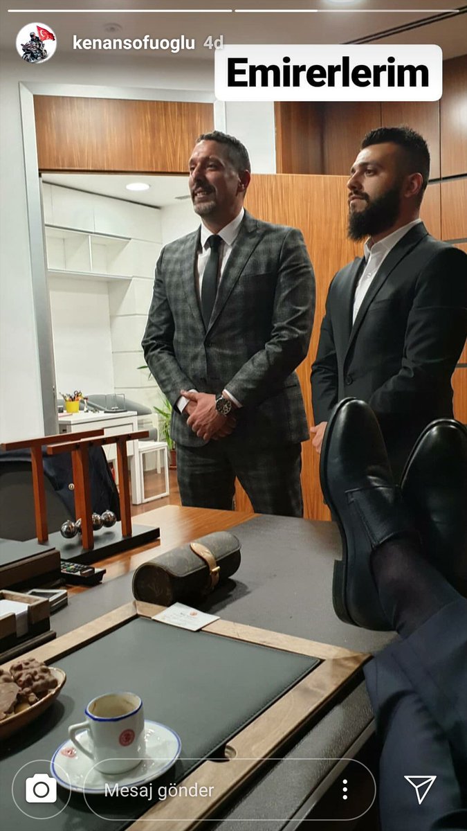 Sofuoğulu, TBMM’deki odasında ayaklarını masaya uzatarak, karşısında esas duruşta bekleyen iki kişi için “Emir erlerim” yazdı. AKP’li vekil daha sonra takipçilerinden gelen tepki üzerine paylaşımını hikayesinden sildi.