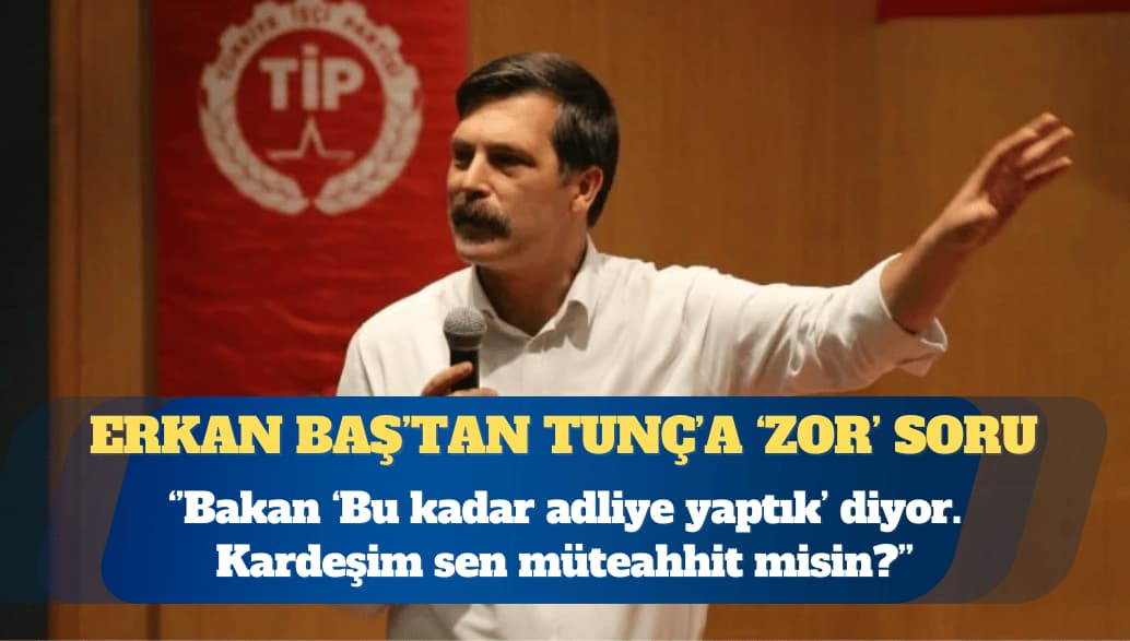 Türkiye İşçi Partisi (TİP) Genel Başkanı Erkan Baş, Adalet Bakanı Yılmaz Tunç hakkında “Sokaktaki insan ‘Adalete güvenmiyorum’ diyor bakan ‘Bu kadar adliye yaptık’ diyor. Kardeşim sen müteahhit misin?” dedi.