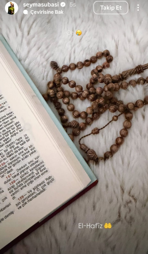 Subaşı bir diğer paylaşımında ise, Kuran-ı Kerim paylaşarak ‘El-Hafız’ notunu düştü.