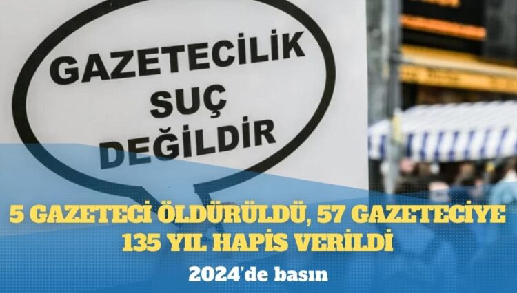 Rapora göre; dördü Türkiye’nin saldırıları sonucu olmak üzere beş gazetecinin öldüğü 2024 yılında; 112 gazeteci gözaltına alındı, 26 gazeteci tutuklandı, 60 gazeteci hakkında soruşturma açıldı, 58 gazeteciye toplamda 135 yıl 7 ay 28 gün hapis cezası verildi.