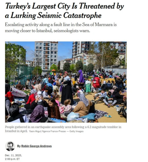 New York Times ve Almanya’nın önde gelen gazetelerinden Tagesspiegel’de yayımlanan yeni bir analizde, Marmara Denizi altındaki Kuzey Anadolu Fayı’nda uzun süredir biriken tektonik gerilimin İstanbul yönüne doğru kaydığını belirterek “süper deprem” riskinin arttığı aktarıldı.