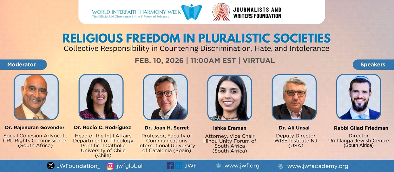 Gazeteciler ve Yazarlar Vakfı (JWF), Birleşmiş Milletler Dünya Dinler Arası Uyum Haftası kapsamında, dünya genelinde artan ayrımcılık ve nefret söylemiyle mücadeleyi konu alan uluslararası bir sanal panel düzenliyor.