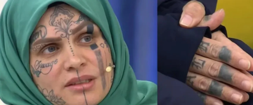 Olayın asıl dikkat çeken kısmı ise Nazan’ın canlı yayındaki görüntüsü oldu. Alnından çenesine kadar uzanan, üzerinde “savage” (vahşi) gibi ifadelerin de yer aldığı dövmeler izleyicinin tüm dikkatini dövmelere odaklamasına neden oldu.