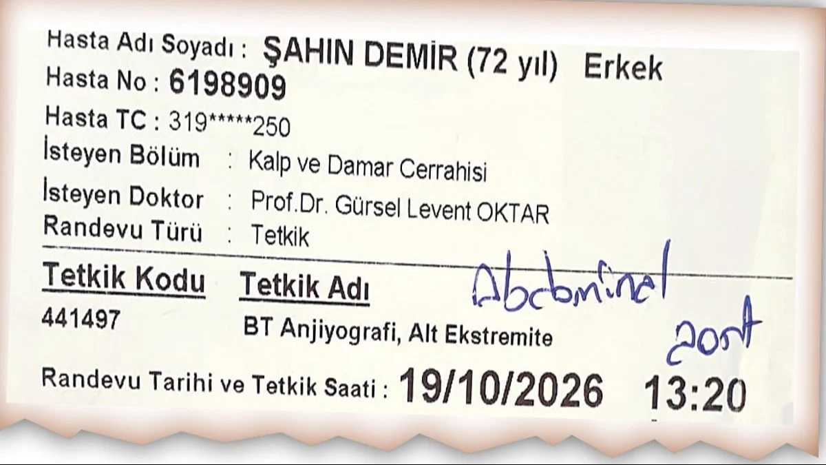 Ankara’da 72 yaşındaki emekli Şahin Demir’e ilaçlı tomografi için Gazi Üniversitesi Hastanesi’nden bir yıl sonrasına, 19 Ekim 2026’ya randevu verildi. Demir, “O zamana kadar ölmezsem çekecekler” diyerek tepki gösterdi.