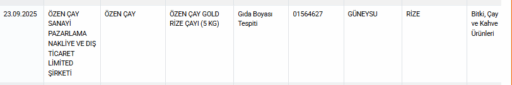 Özen Çay Sanayi’ye ait Özen Çay Gold Rize Çayı (5 kg) ürününde gıda boyası tespit edildi. İl: Rize/Güneysu, Parti No: 01564627.