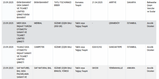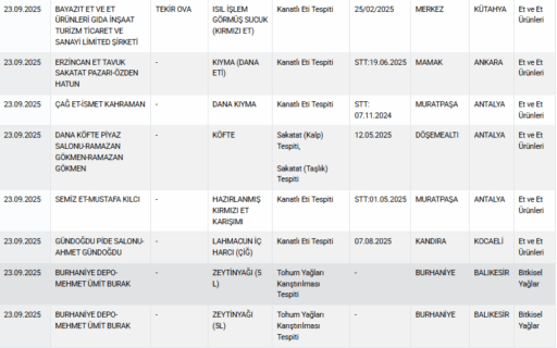 Ticaret Bakanlığı’nın açıkladığı 23 Eylül 2025 listesi, gıda güvenliğinde yaşanan sorunları bir kez daha gözler önüne serdi.